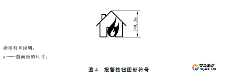 5.2.5.1-a 報警按鈕應在前面板的上部居中位置標注圖4所示的圖形符號及“手動火災報警按鈕”文字,圖形符號和文字應為白色,圖形符號的高度不應小于0.15a。